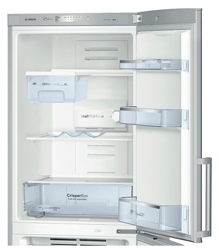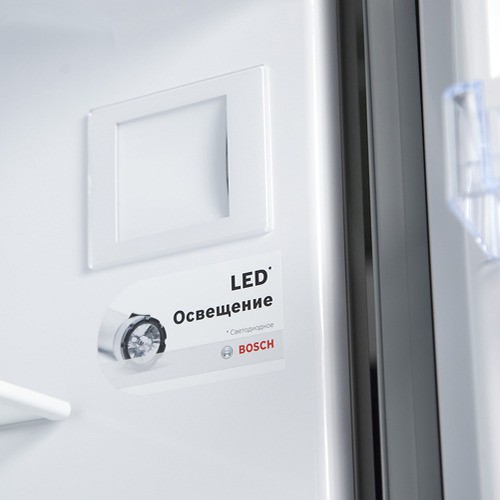 External beauty of Bosch refrigeratorsCrystal design»Perfectly harmonizes with the interior trim. Aggregate white, silver and transparent plastic creates a feeling of freshness and purity.