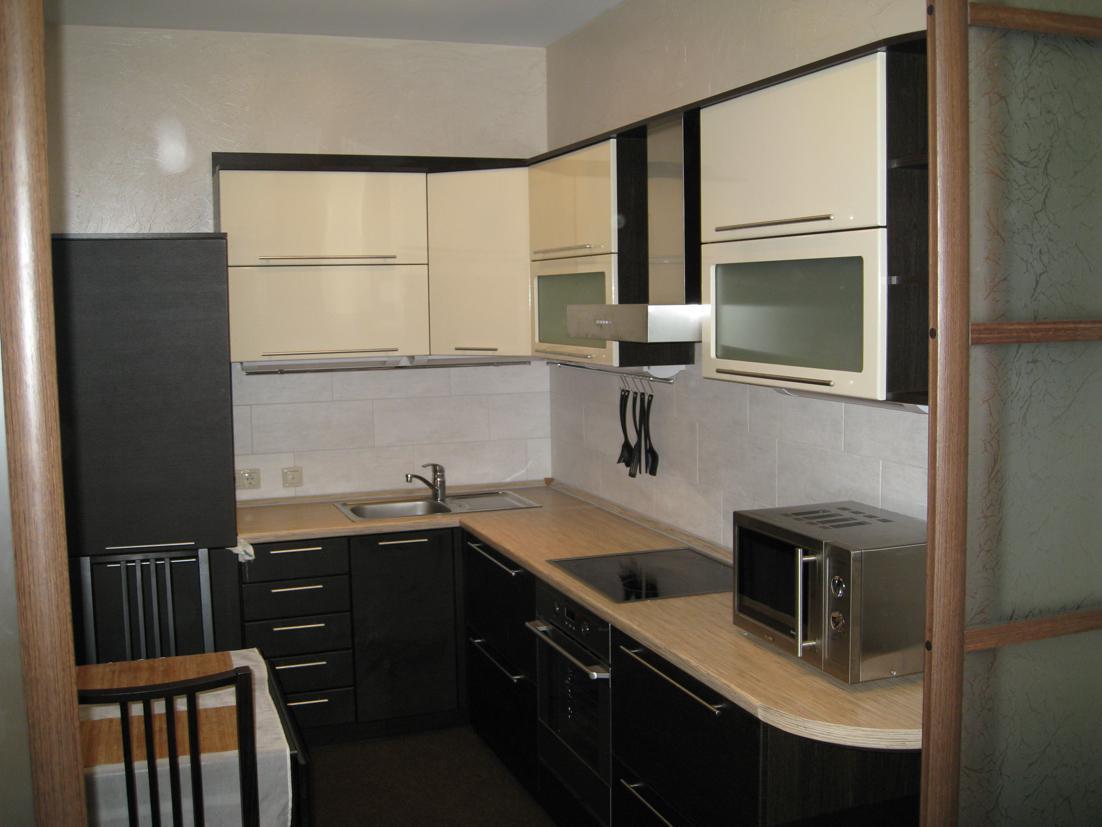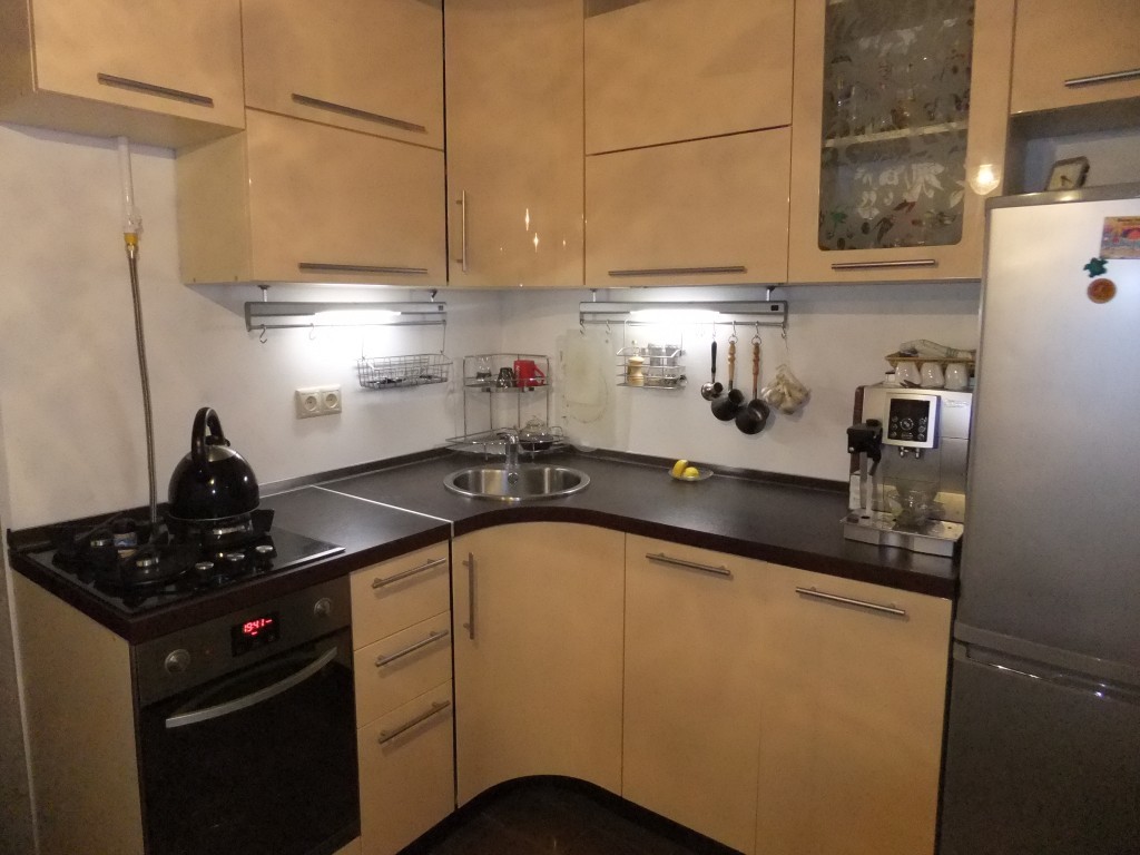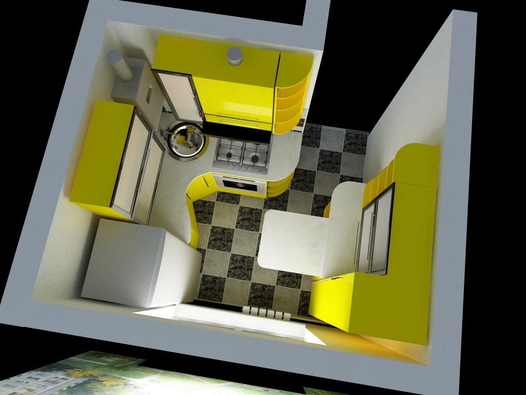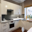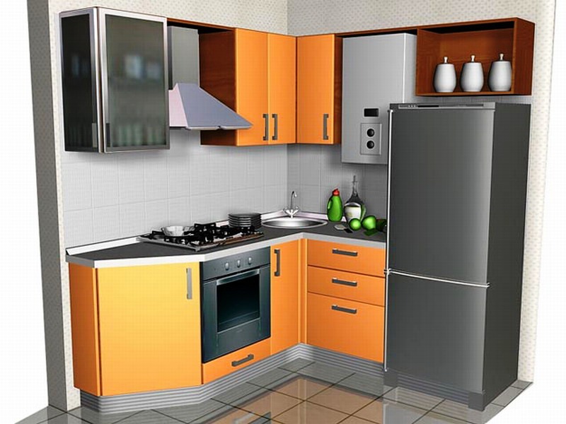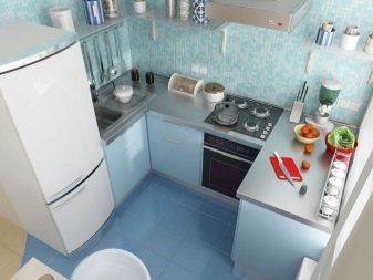 Corner location a kitchen unit is the most successful furniture for such a small room. Such an environment will make it more comfortable and ergonomic.