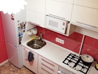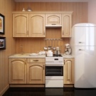 A separate problem in a small kitchen is the placement of the refrigerator, since it takes up quite a lot of space. It is not recommended in this kitchen to install a fridge type "Side by side"This is due to its increased dimensions. It will be inconvenient to use such equipment in a small kitchen, and it will be quite difficult to fit it into the interior.