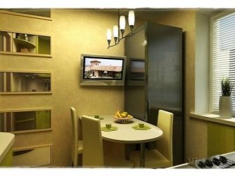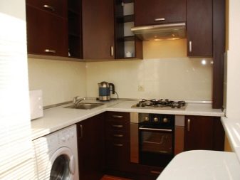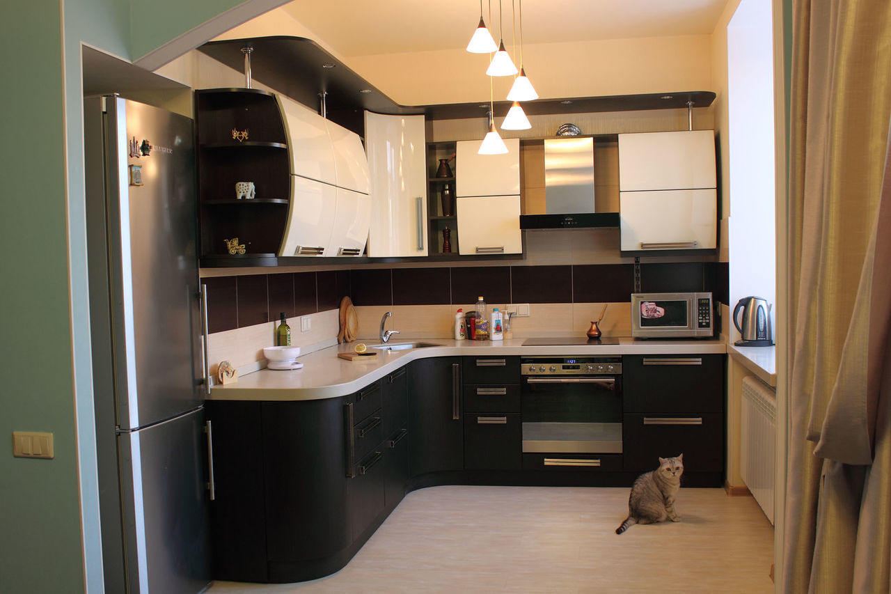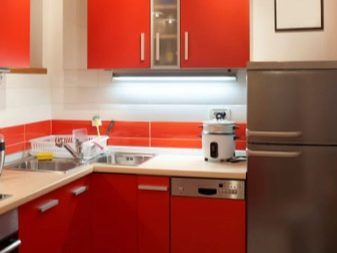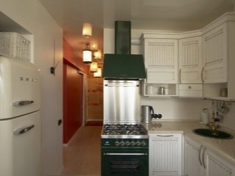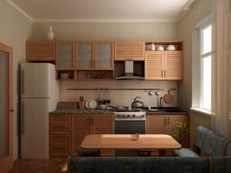 If the furniture is placed in a straight line, then usually the refrigerator is installed in one of the corners.