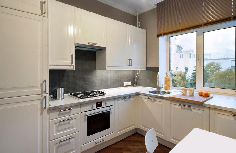 In order to make it easier to find a place in the kitchen area for installing this appliance, you need to get rid of the bulky kitchen appliances, replacing it with a more compact one. For example, an oven in itself can accommodate in addition to the main function also a steamer and a microwave oven. The food processor can be easily replaced with an immersion blender if you are not a professional cook.