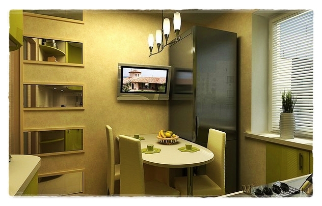 An excellent option for a small kitchen is a device with a mirror-coated door. It will not only become an accent on the kitchen, made in a modern design,but also helps to visually expand the room.