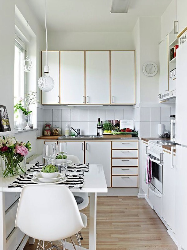In addition, consider whether you need a complete dining area in the kitchen. It can easily be transferred to the living room, and in the kitchen you can install a small bar counter or do without it.