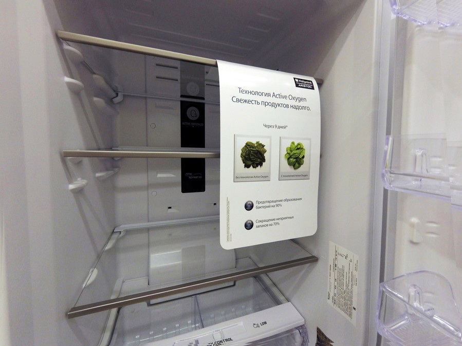 Quite an interesting model - with special technology. The manufacturer declared a guarantee of food preservation in the fridge fresh for nine days.The same thing happens with antibacterial coating or innovative ozone technology in Active Oxygen.