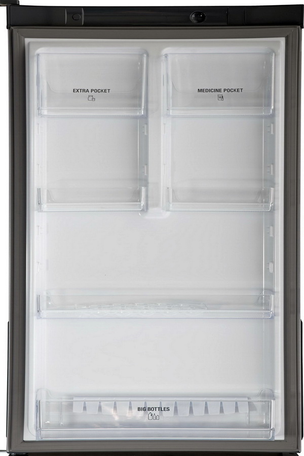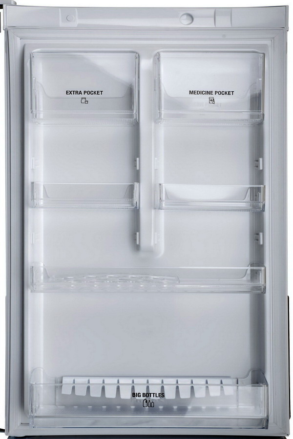 A set of two solid balconies, two small open shelves and two compartments with covers.For bottles, medicines, various trifles and for eggs, there will certainly be places.