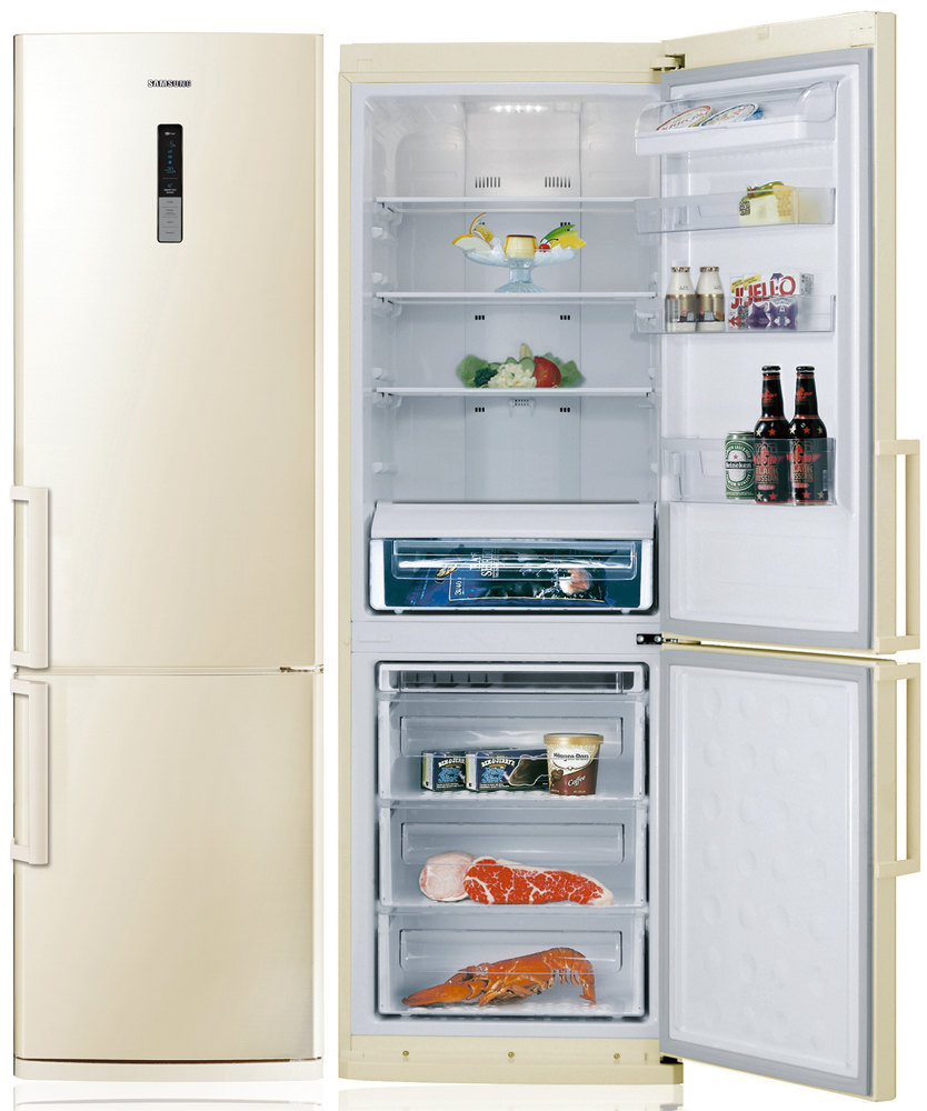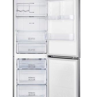 - Spaciousness and stylish design attracts buyers model Samsung RB41J7761B1. Metal cooling technology allows you to quickly restore the desired temperature, with frequent opening of the refrigerator door. Consumers are pleased with the presence of the All-around Cooling function, due to which you don’t need to guess on which shelf to put the product so that it doesn’t deteriorate, as the temperature is the same in all compartments. Among the shortcomings, users noted that the refrigerator has a very marking surface. The price of such equipment is approximately 70,000 rubles.