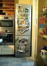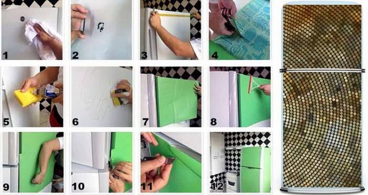For those who like to fantasize, a combined pasting of a refrigerator is suitable, in which the color scheme is selected in accordance with the prevailing shades of design in the kitchen. If, for example, the kitchen is decorated in blue, then the refrigerator can be pasted over with blue film. The decoration of the refrigerator in red and black colors also looks beautiful. It all depends on your preferences and fantasy. However, in any case, everything should be done as carefully as possible - only this way the result will be perfect.