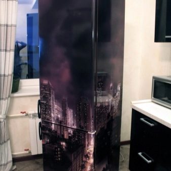 An important point is the quality of printing on the film.Often, for a harmonious combination of a refrigerator with the general interior of a kitchen, experts recommend independently selecting an image, which is then given to the print studio and applied on a white film. In this case, you can order the usual large format printing, but for the design of the refrigerator it is better to give preference to a special interior printing. So the picture is much clearer, it is close to the quality of the photo.