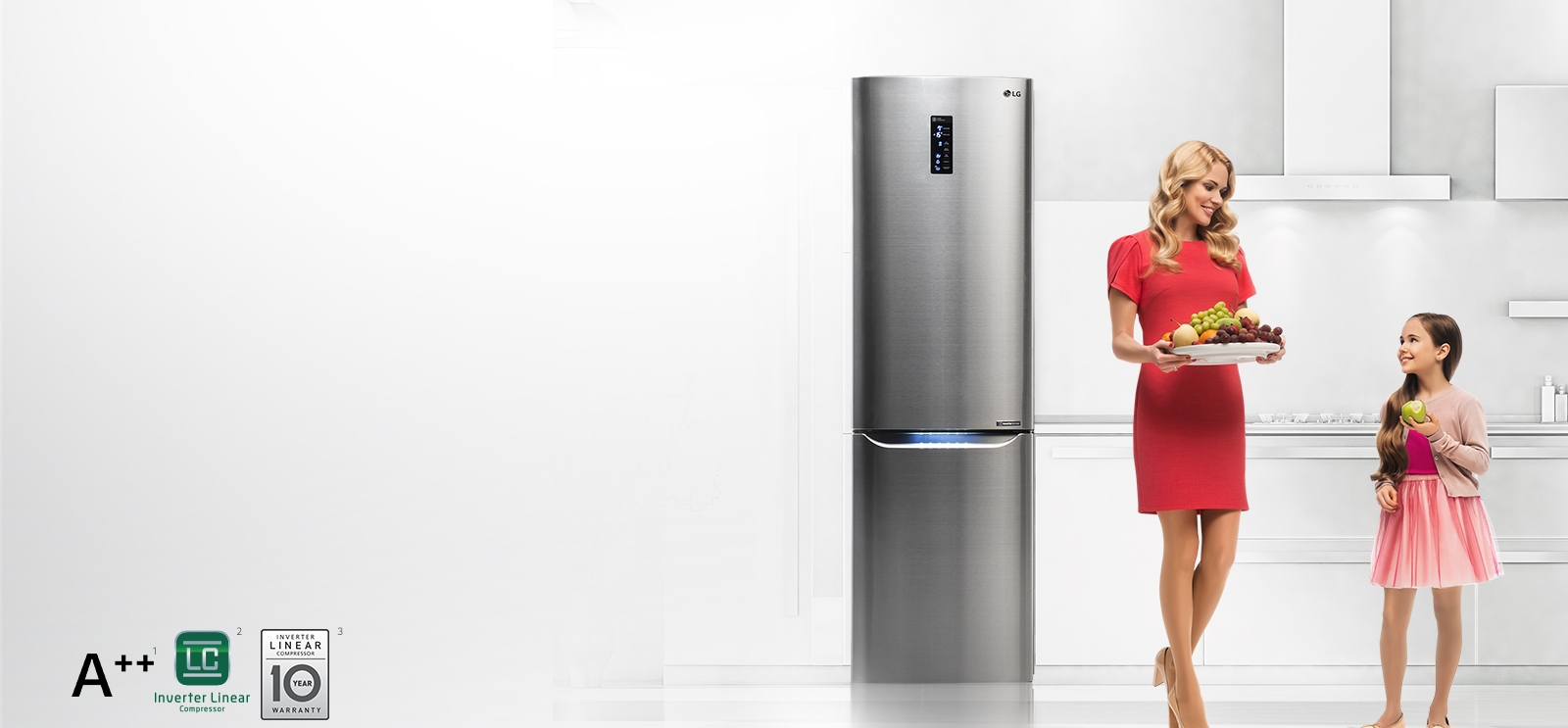 LG refrigerators with Total No Frost system are available in several models. All of them are two-chamber, with a bottom freezer. They have a system of energy saving A +, which reduces energy consumption to 376 kWh per year.