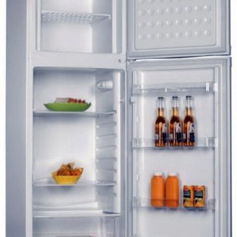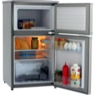 The refrigerator has 2 shelves, the location of which can be changed at its discretion, and a box for fruits and vegetables, and is also equipped with a defrosting drip system. These models are energy-saving, and when turning off the electricity can keep cold for about 7-8 hours, which indicates their good thermal insulation. The big advantage is that they work quietly enough, which is very important for a small space.