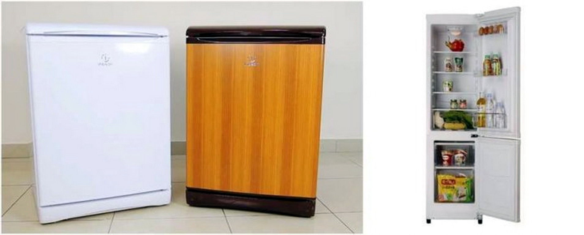 The appearance of modern mini-refrigerators allows to solve any design problems.. The color scheme is so diverse that you can even pick up a model under the shade of the kitchen. The main advantage of two-chamber refrigerators is that, unlike single-chamber refrigerators, ice does not freeze in the freezer, and the refrigerating compartment is defrosted on its own using an automatic drip system.