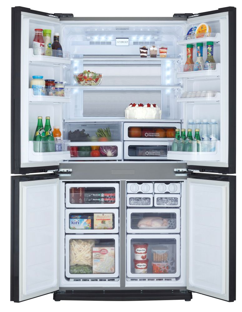 - Sharp. Freezers of refrigerators of this brand are very often equipped with a double door, which allows to significantly increase their volume. This part of the structure in most cases is located under the refrigerator. At the same time the freezer is no different from other standard systems. It is also equipped with several drawers. Please note that one of the side compartments of the freezer can be used as a zone of freshness. Some models of this technology are equipped with a special technology of protection against bacteria, which is introduced directly into the freezer.