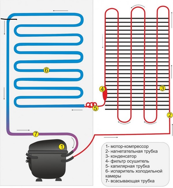 Two-chamber refrigerators are one of the most common designs used in everyday life for food storage. This mechanism consists of several main parts: