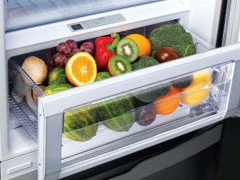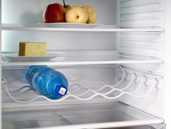Shelves, which are produced in two types, depending on the model, are included in the refrigeration department package. This may be a metal grill, covered with a special protective layer or tempered shockproof glass. At the bottom of the chamber are covered boxes for storing vegetables and fruits. Closed space helps them stay fresh longer and retain their beneficial properties. On the door there are shelves. Also included a container for storing eggs, and in some models a bottle holder.