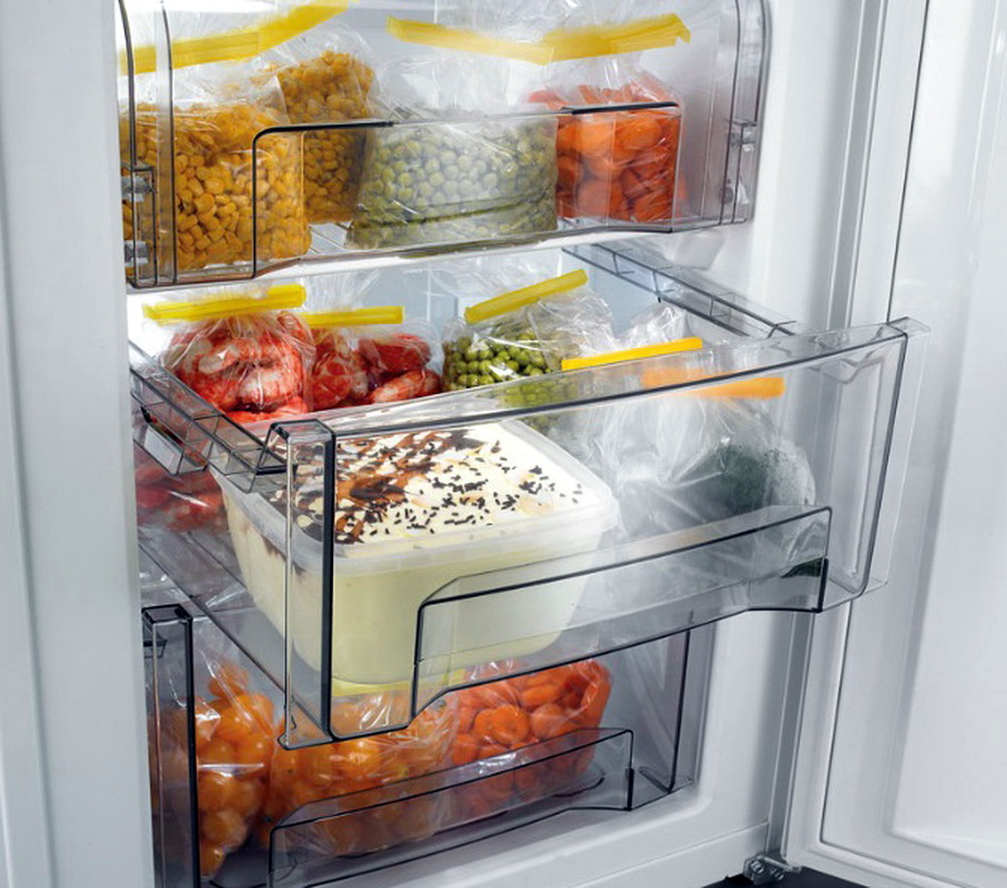 Depending on the model, the freezer can have one removable shelf, a shelf and several drawers or two pull-out trays. In addition there is a capacity for freezing ice.