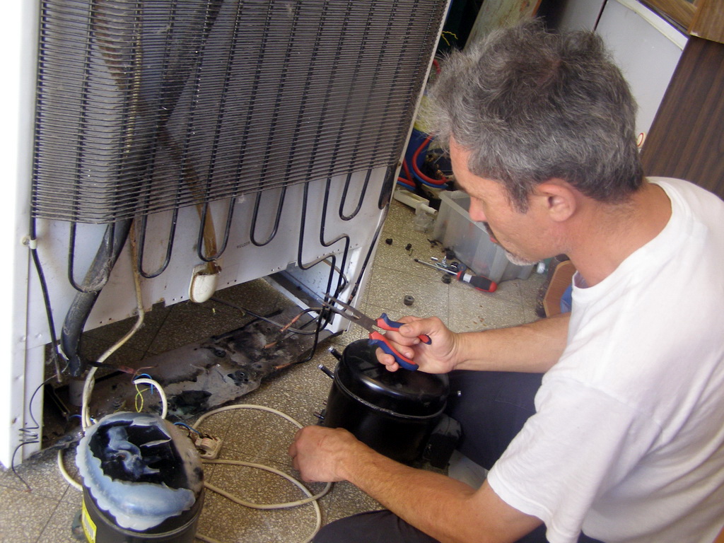 if the device turns on, the backlight bulbs work, but it does not cool, it may be necessary to replace the thermostat;