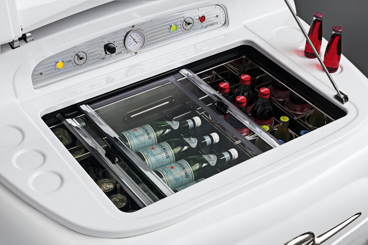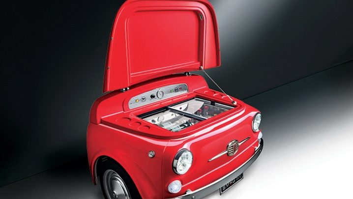 Smeg 500R - trendy model with a distinctive red design FIAT 500 and a useful volume of 100l.