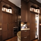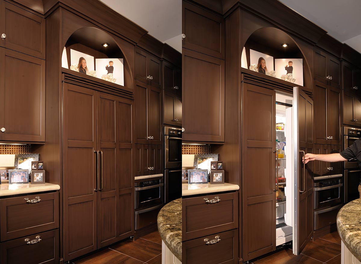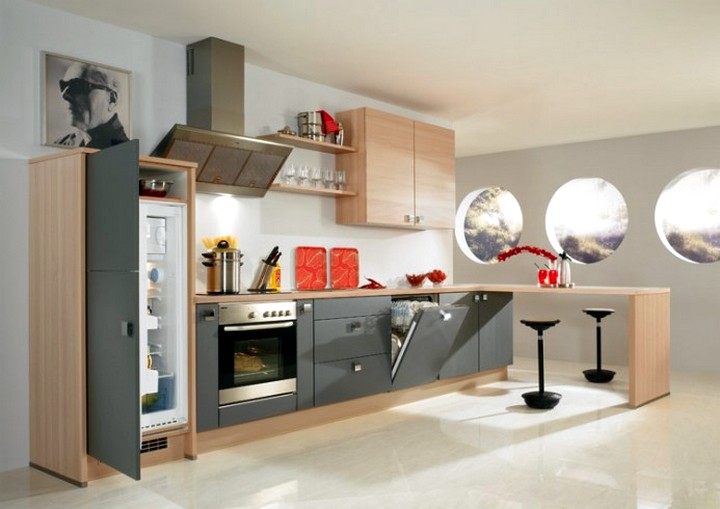 It should be noted that the embedded technology of this kind is characterized by the possibility of decorating. This became possible due to special patch panels that can be installed on the facade. This approach is used only in the case when the upper part of the structure does not hide behind the doors of the kitchen unit.
