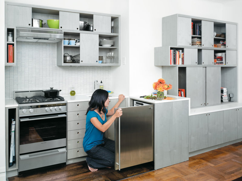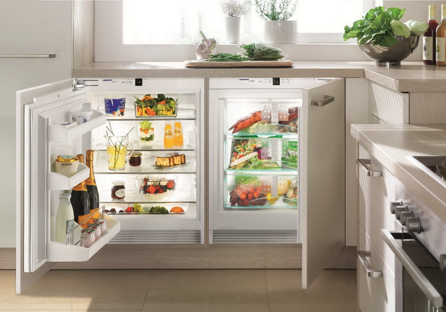 - Design features. According to this parameter, devices can be divided into stand-alone and recessed. The latter are mounted directly into the kitchen furniture and do not require ventilation, due to the presence of special channels, a more reliable compressor.