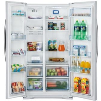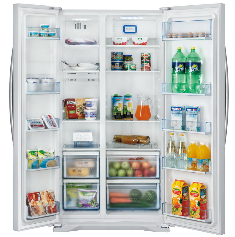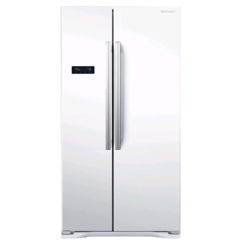 - Shivaki SBS-615DNFW. This model is representative of wide refrigerators and belongs to the type of side-by-side.Among the positive functions, it is worth noting the presence of an ice generator, but with the No Frost system, a day off function, protection from children and fast freezing. The dimensions of the device are 176.6 * 91.2 * 67.8 cm (b * w * g, respectively).