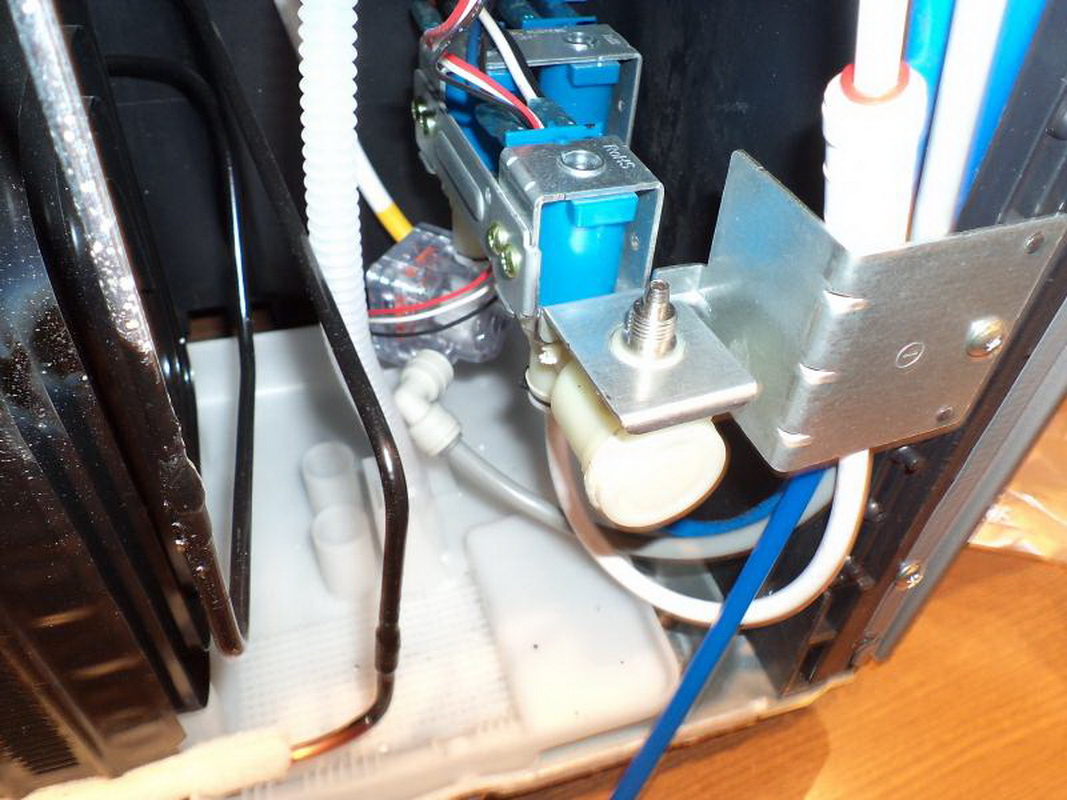 - After connecting to electricity, current is supplied to a special water valve.. This causes it to open and let the right amount of water into the freezing tank. Thus, all the molds present inside are filled.