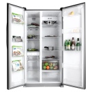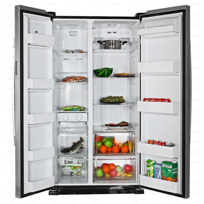 The total volume is 527 liters, 183 of which are allocated for the freezer. In size, it even exceeds SHRF-620SDG-B - its height reaches 179 cm. The depth is 74.5 cm and the width is 89.5. Equipped with systems of automatic defrosting, fast freezing, accelerated cooling, antibacterial protection. It is also possible to set the vacation mode - allowing you to save electricity during the absence of owners.