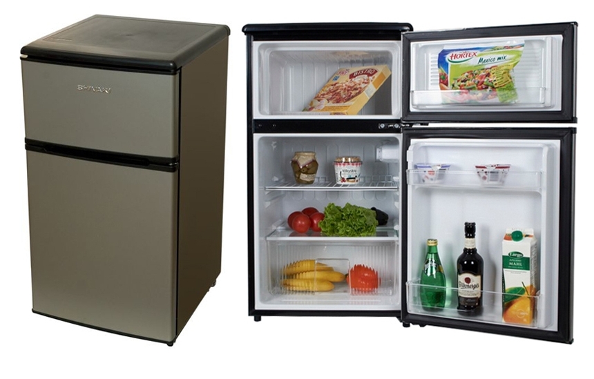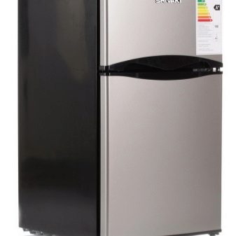 The freezer in this unit is located on top and consists of one compartment.It works almost silently, which allows you to install it not only in the kitchen, but also in any other room. Often it is purchased for office space. To save space in a small kitchen, on top of SHRF 90DP can accommodate a microwave. The defrost system in this model is manual, which is probably its only “minus”.
