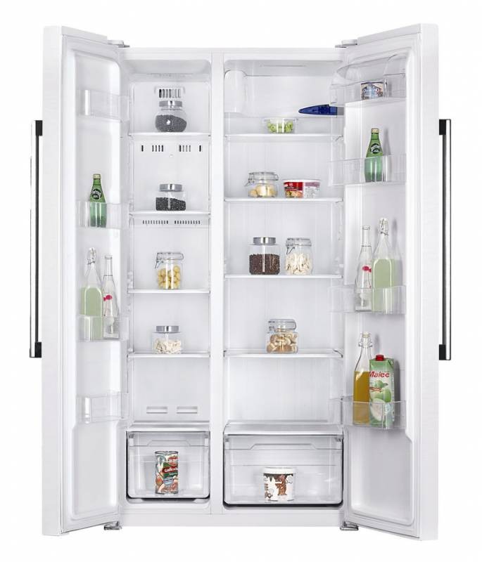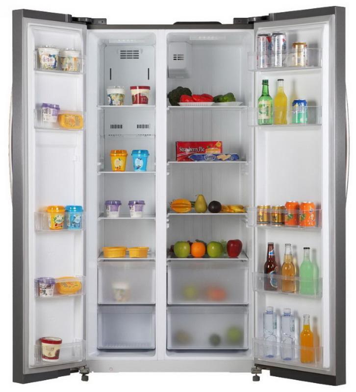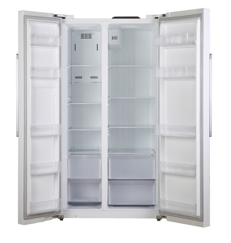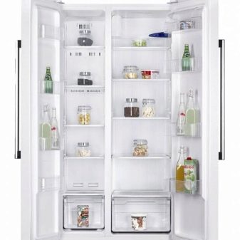 - Units with two wings ("Side By Side"). Elegant and stylish appliances, suitable for spacious kitchens. Chambers in such a model are not located one above the other, but beside them: on the left side there is a freezer, on the right side - refrigeration. Externally, a double refrigerator resembles a cupboard, while its dimensions can vary: in height from 170 to 215 cm; in width - from 80 to 125 cm; in depth - from 60 to 91 cm.