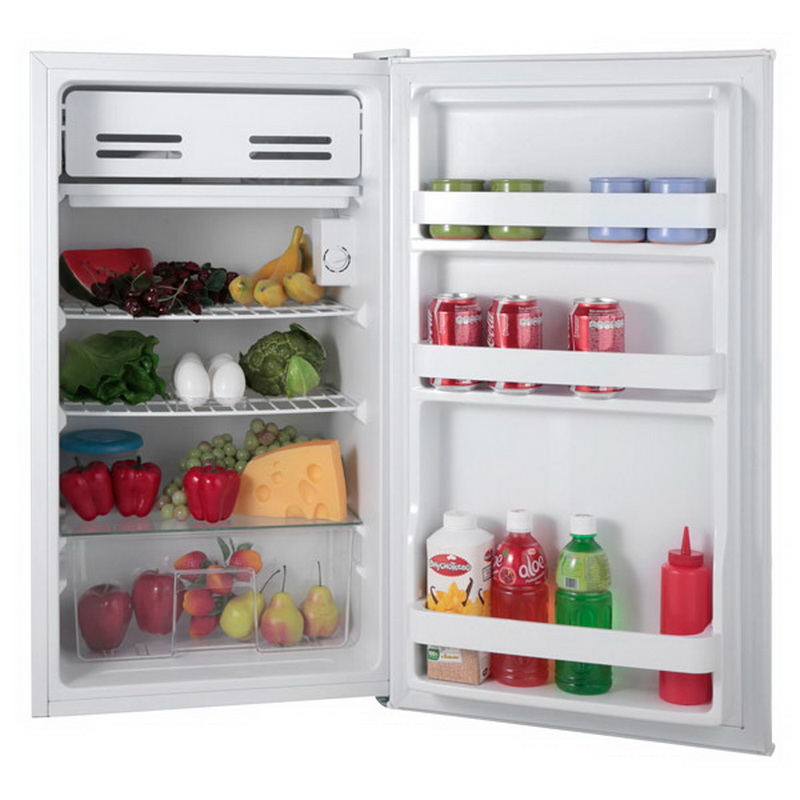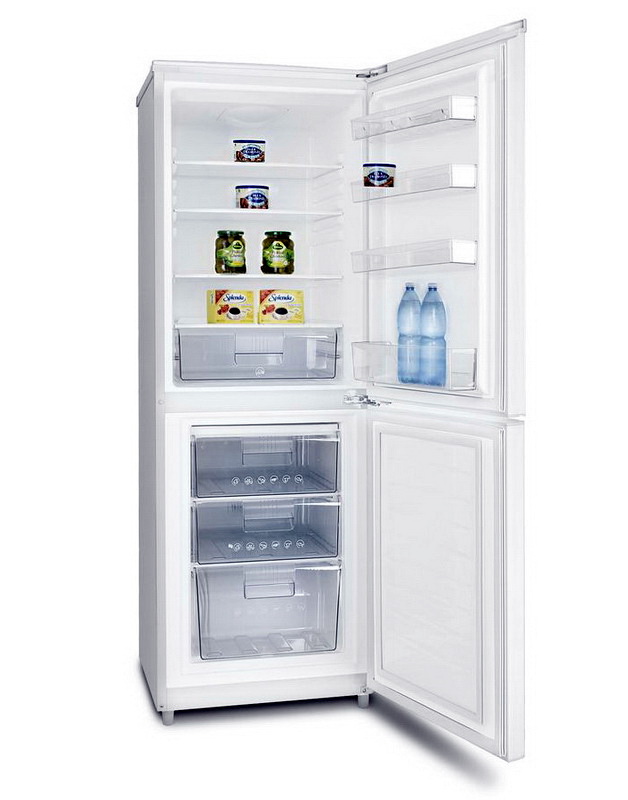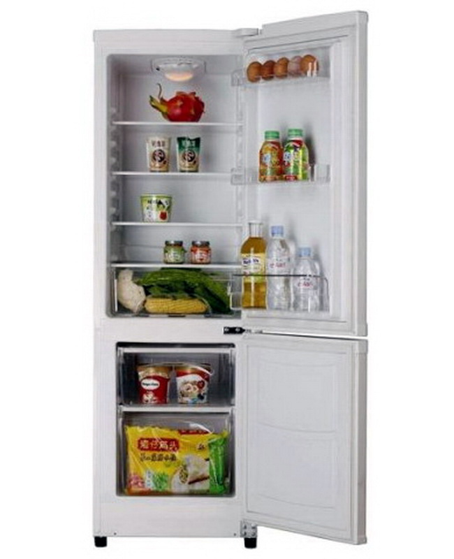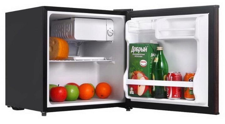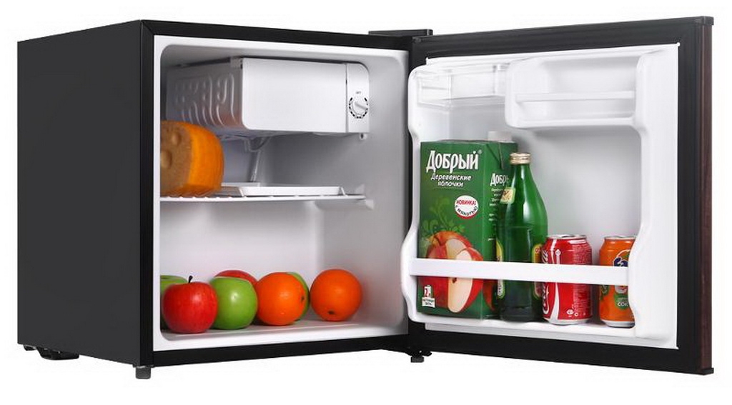 Consists of refrigerating and freezing chambers. The volume of the latter - 5 liters.Everything else is reserved for the refrigerator compartment. Inside is equipped with three shelves and a compartment for storing bottles. Due to its compactness and ease of use, combined with good capacity, it is widely used not only in apartments, but also in hotels or offices. The operation of such a device is regulated by an electromechanical switch. Defrosting here is done manually. The door of the equipment can be easily outweighed by adjusting it to fit your needs and preferences.