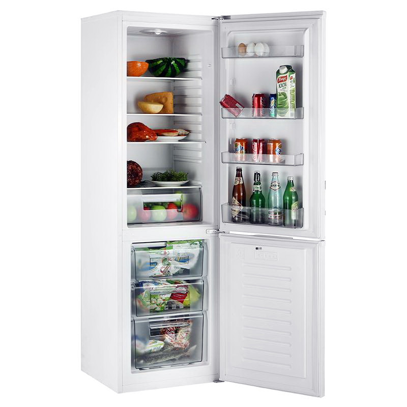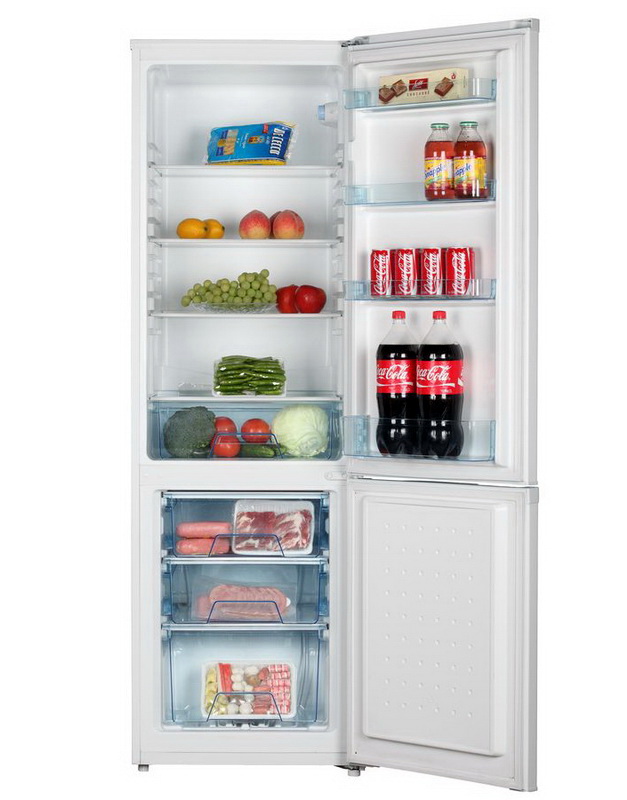 The total volume of the refrigerator - 249 liters, 179 of which fall on the refrigerator, the rest is reserved for the freezer. The storage compartment is equipped with 4 glass shelves, 4 pockets on the inside of the door and drawers for storing fruits and vegetables. The freezing compartment, in turn, is divided into 3 compartments and allows you to freeze up to 3.5 kilograms of food per day. The control device is electromechanical, energy saving class "A", and the noise level does not exceed 43 dB. As an additional feature, the camera doors can be re-weighed in a convenient direction for users.