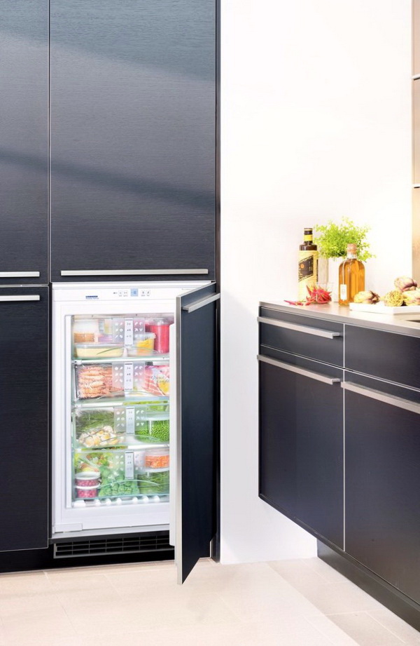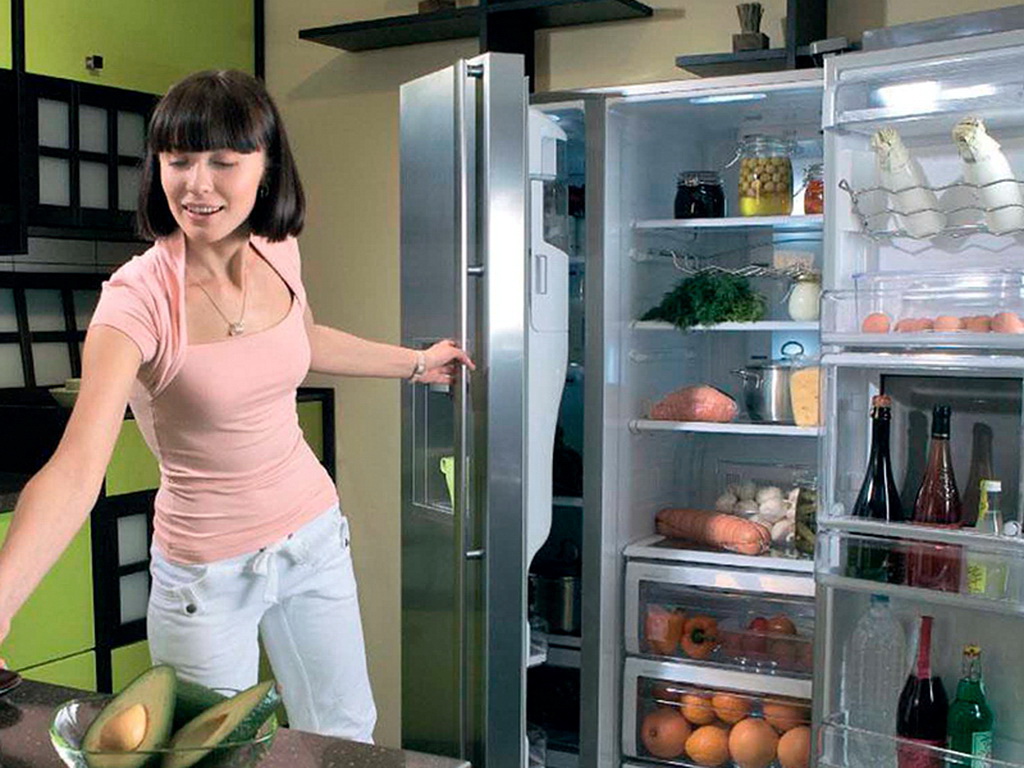 The internal space of such models is equipped with sliding shelves, containers, pockets and compartments in which you can store various foods and beverages.