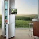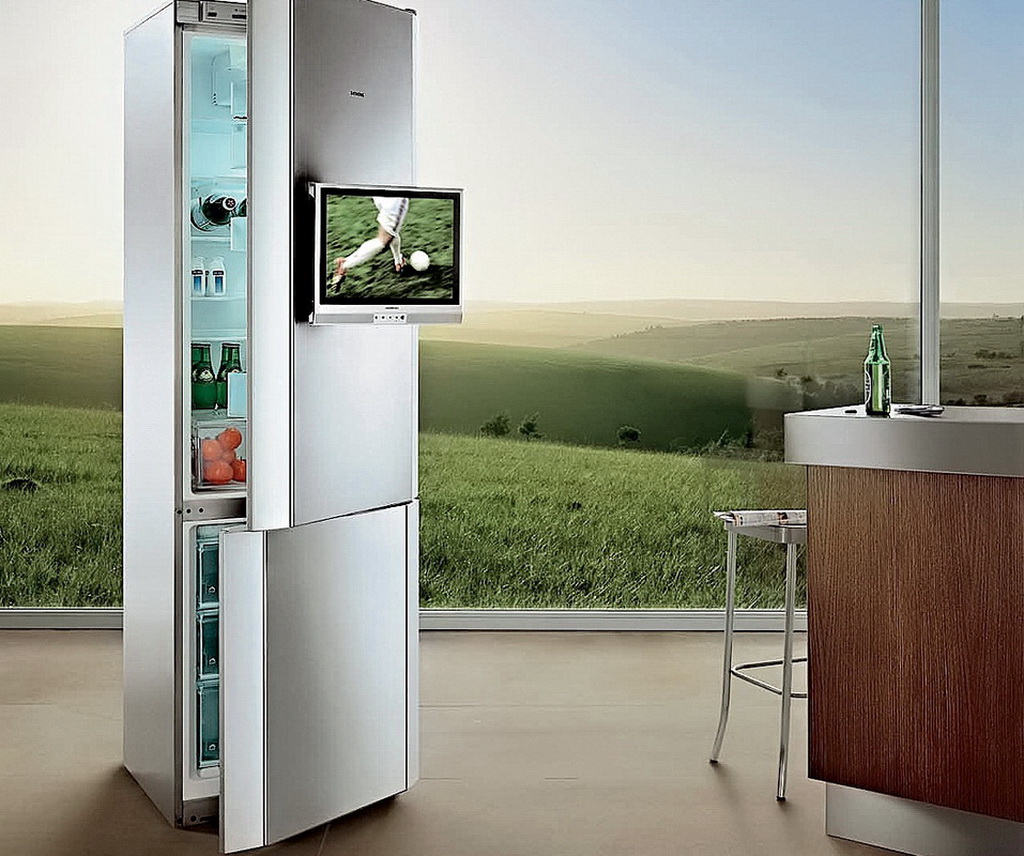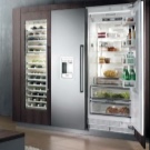 The refrigerator belongs to the same category of embedded devices. Siemens "Electrogerate gmbh". It fits perfectly in small rooms. Despite the fact that it is integrated, a large number of products are placed in it. The device has two doors. The freezer is at the bottom. The control panel is located on the top of the front panel. It’s easy to set the desired mode. It works quite quietly, which is important. Many consumers want something new and unusual for themselves. The original solution will be a fridge with a glass door, it will add a zest to the kitchen interior. at the bottom. The reliable German quality of this bypass unit ensures long-lasting performance.