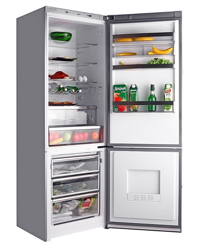 System "No frost"does not allow re-freezing of products and prevents the formation of ice. The refrigerating and freezing chambers are very spacious. These models have antimicrobial protection that prevents the penetration of harmful microorganisms into your food.On the front panel there is a display that allows you to enable the necessary functions, adjust the temperature in the cameras, and shows possible errors in the operation of the device. Magnificent appearance, undoubtedly, will please hostesses. Some devices harmoniously combine several colors: the front is black glass, the sides are painted silver. Power consumption at a high level, as evidenced by class A +. It is possible to weigh the doors on the right side.