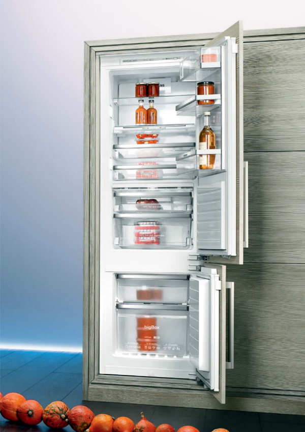 If you want to buy a built-in refrigerator Siemensthen we advise you to look at the model range of the series KI. This technique is very easy to operate, reliable and functional. The built-in device is invisible and blends well with the overall design of the room. Models of this series are two-chamber, the freezer is located at the bottom. The work is silent. Shelves and drawers are easy to reach, convenient to wash. An interesting addition was the folding shelf, which allows you to put high objects inside. The number of compressors 1 or 2, depending on the model. High energy efficiency class A +, A ++. Thanks to modern technology products are stored for a long time.The freezer does an excellent job of its work and quickly freezes meat, vegetables, fruits. All models have a modern design.