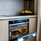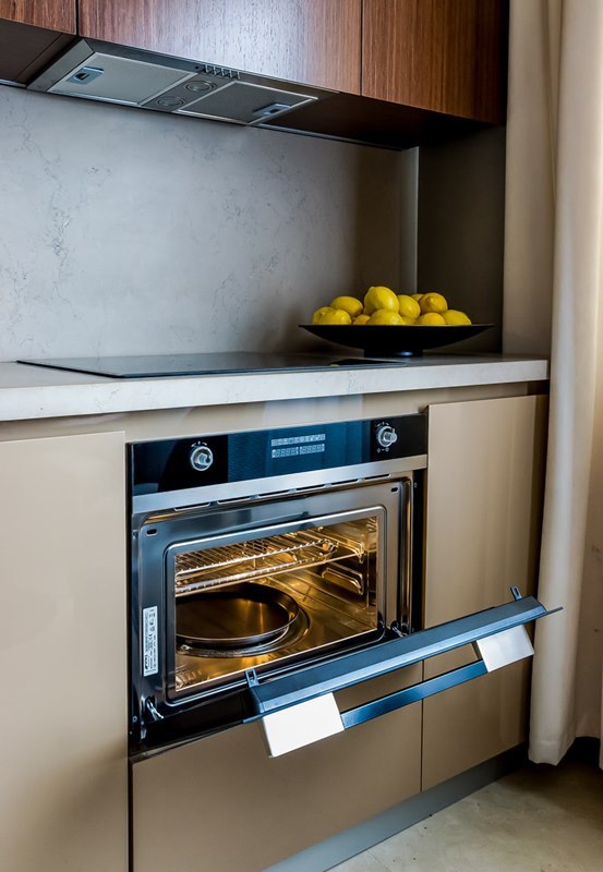 A similar layout problem applies to built-in ovens or simply ovens. In the instructions of any refrigerator it is written that it is strictly forbidden to install it near the heating equipment, and the oven and oven are sources of heating. Therefore, the distance between them should be at least 50 centimeters. Of course, manufacturers additionally equip the refrigerator with insulation, but it is designed to operate the device at normal temperature.