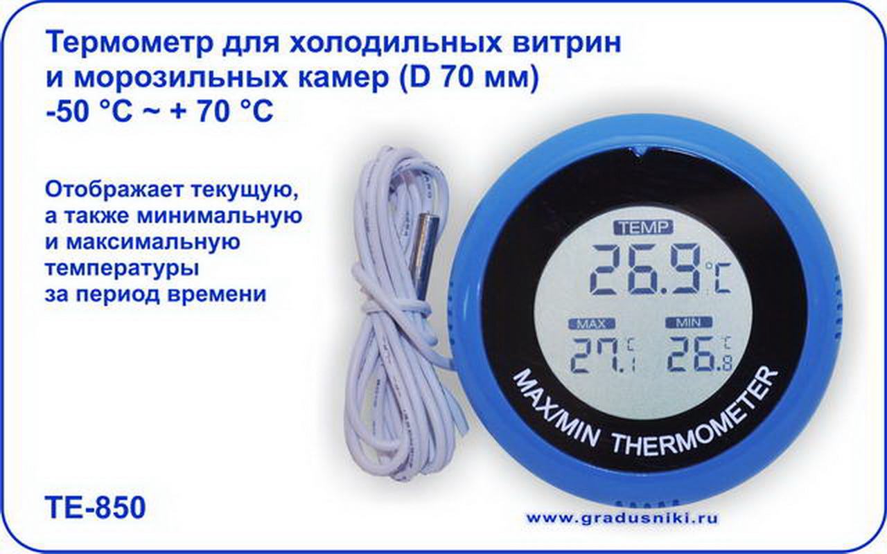 The use of a thermometer in freezers and shop windows is relevant. There, the risk of temperature fluctuations is particularly high, since shop windows tend to have thin upper walls and can pass unwanted heat. Therefore, store employees need to constantly monitor that the temperature under the influence of the external environment does not rise above the permissible value.