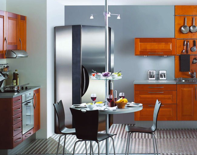The soul of an apartment is a kitchen. Here the mistress of the house spends a lot of time and the whole family gathers, the most intimate conversations often happen in this part of the house. Therefore, I want to make the kitchen as comfortable and convenient as possible. Quite often it is difficult to do because of the small size of the room. In this case, you have to carefully think through the interior, selecting the appropriate furniture and household appliances, which will free up the free space while preserving the functionality of the kitchen room.