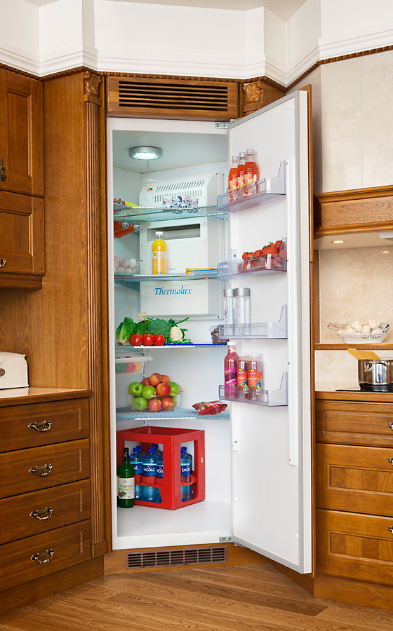 The corner refrigerator is exactly that heavy artillery,which will destroy stereotypes and will reclaim for you the free space in your favorite kitchen.