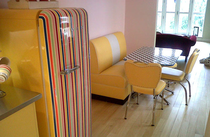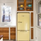 Many people, having tried once to move away from the usual colors to bright ones, never come back. It is also the case with the color refrigerator. This bold, at first glance, decision will help to cope with despondency in everyday life, will lift your spirits, will be charged with positive, excellent emotions. Yellow home appliances in the kitchen in the morning will give a bit of vigor, and in the evening will add a touch of warmth and comfort. You can be sure that the interior design of the room will only benefit with the appearance of a yellow frosty inhabitant.