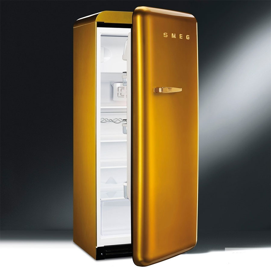 The single-chamber model FAB28RG from the Smeg brand is a recollection of the stylish 50s.Such a refrigerator will neatly fit into the interior of even a small kitchen, because its width is 60 centimeters, height - 151 cm, and depth - 67 cm. The device will not make noise and interfere in the house, since its noise level is 40 dB, which is quite a bit . In addition to all, there is a box for storing vegetables and fruits and interior lighting.