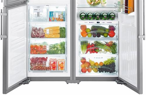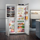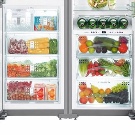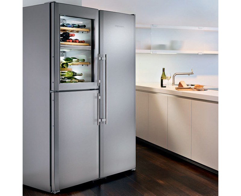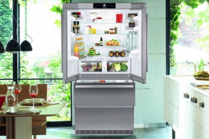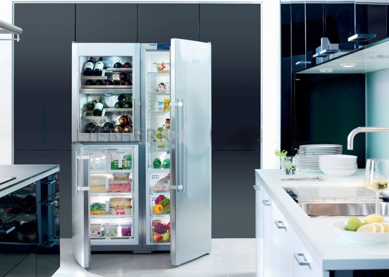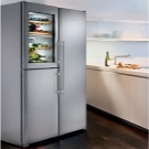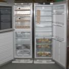 Refrigerator "Side by Side" (double) - for the most demanding people. Huge, suitable for country houses, where large companies gather, or for a large family with a good income. It has a built-in wine cabinet and a large “BioFresh” zone - customers have no complaints about its work.It has a special coating on which there are no fingerprints.