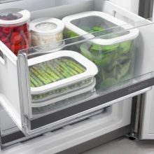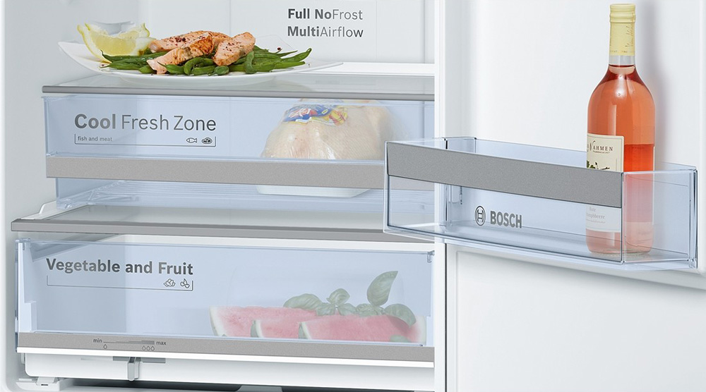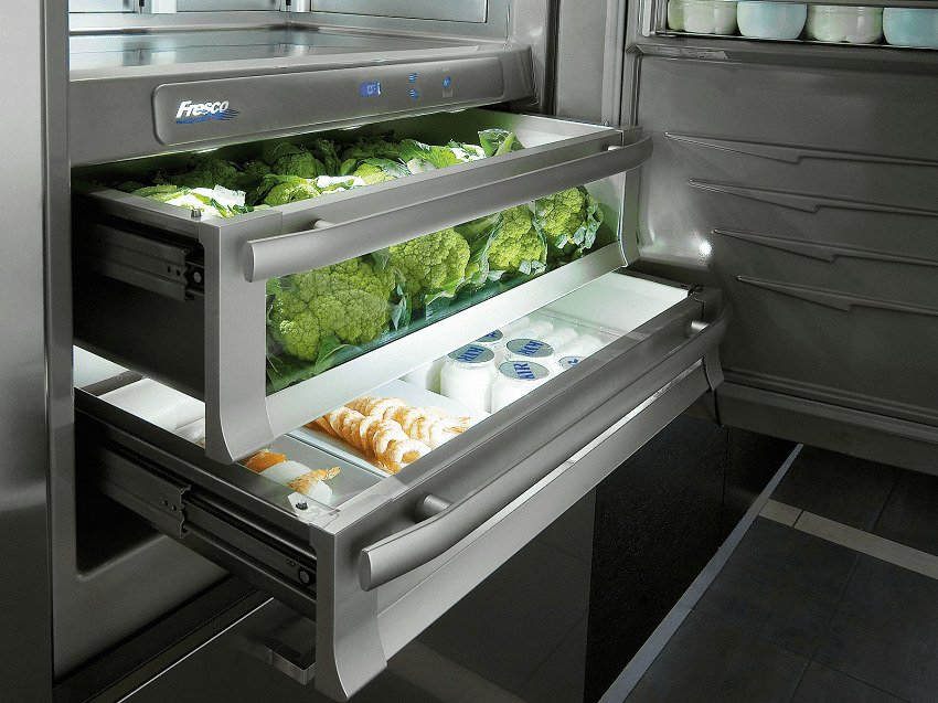 The freshness zone is a shelf, compartment or container. It can be retractable, and can be hidden behind the flip panel. In inexpensive refrigerators, the freshness zone is usually one. The more expensive models often have two compartments that are designed for different purposes. One is for meat and dairy products, and the other is for vegetables and fruits. They differ in the level of humidity: the “meat” zone is drier, the “vegetable” zone is wet. There are models where the humidity in the compartments can be adjusted independently.