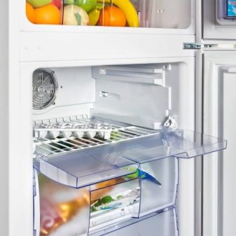 The cooled air gets there from the freezer compartment through a special tube. This option is not the best, because the temperature can not keep at the same level constantly.