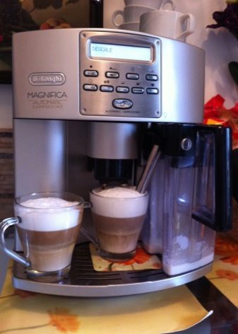 - "Lattissima". Capsule type device with modern design. In automatic mode, you can make espresso, cappuccino and latte macchiato. The cleaning system is also automatic.