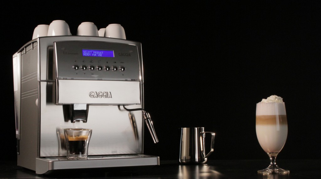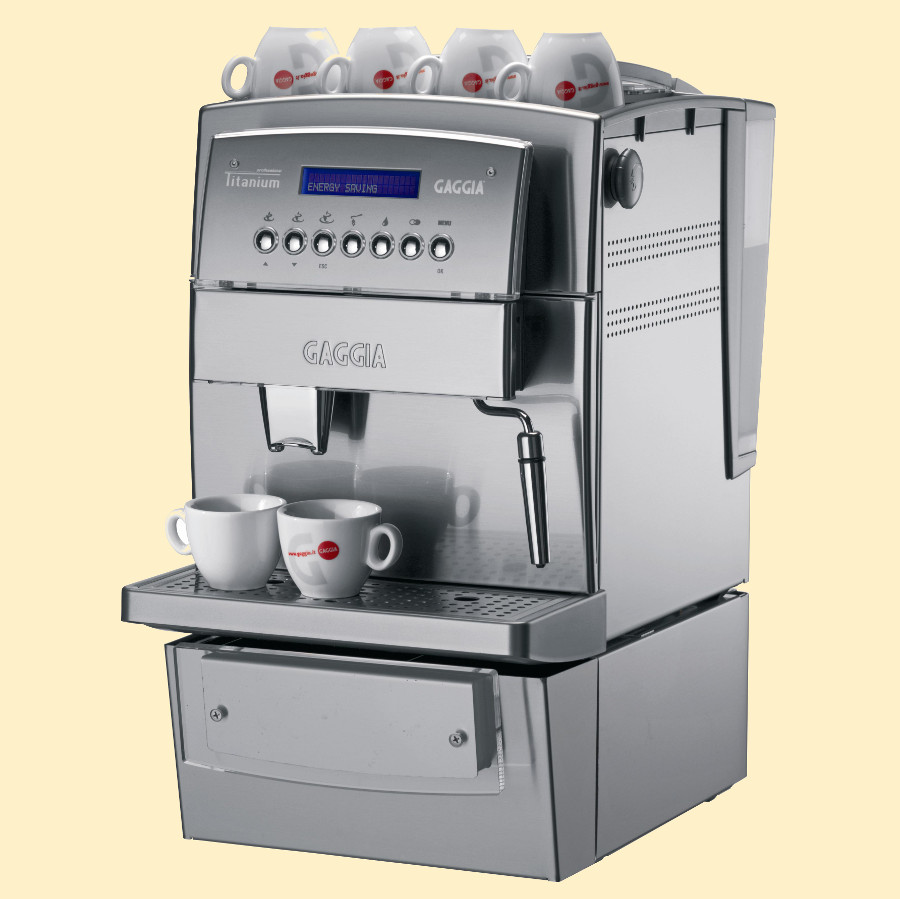 - Gaggia Titanium Office. Reliable and unpretentious in service coffee machine, which is made in the original design with an LCD display.Equipped with energy saving mode and timer, which makes the operation process easy and safe. A special nozzle for whipping milk, which turns it into a gentle foam in seconds, serves as a supplement. The clear control panel makes the operation process as easy as possible.