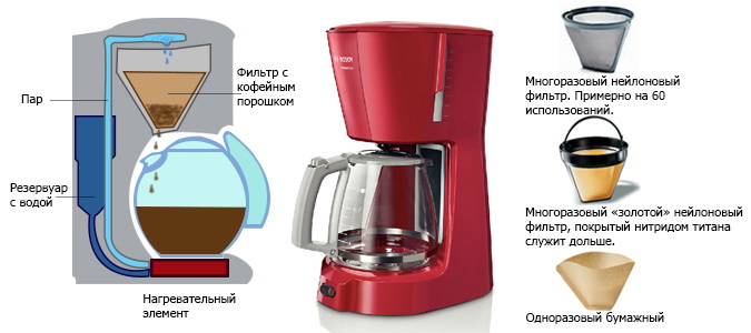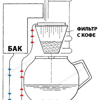 - heating. Almost all drip-type coffee makers are equipped with this feature. A special table independently heats the flask, which makes it possible to maintain the optimum temperature of the drink;