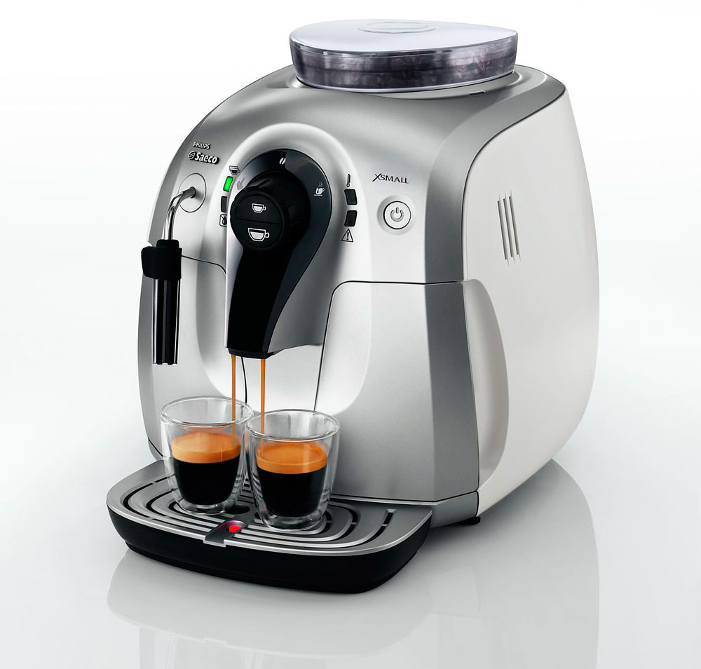 - Philips Saeco Xsmall. This category of coffee machines is a whole series of devices, among which the simplest is considered Steam. This mini construction includes a 1 liter tank and delivers a pressure of 15 bar. There is also a coffee grinder, a function for adjusting portions and the possibility of making two cups at the same time.