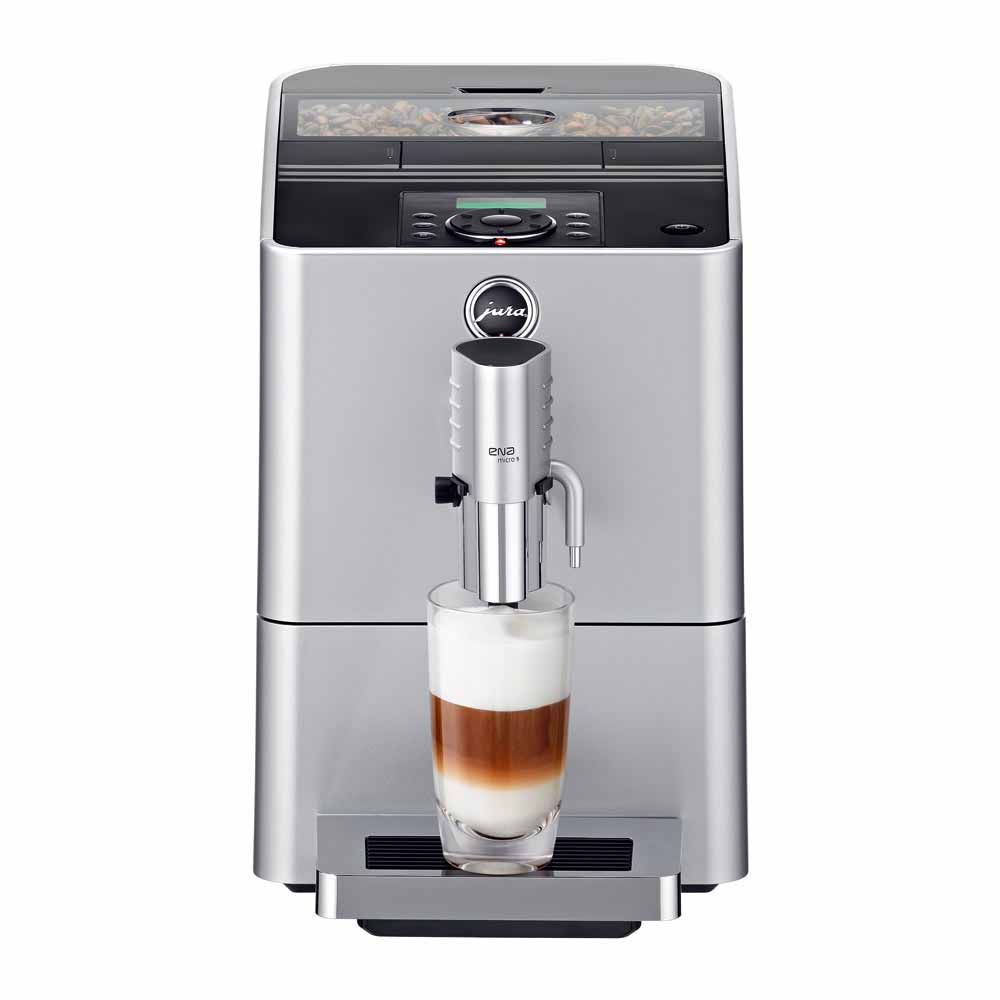 - Jura Ena Micro 9 One Touch. This model has a small size and holds only 1.1 liters, giving out 15 bar. Among the positive features we can mention the possibility of making several types of coffee, automatic cleaning and flushing of the system. Also, the machine reports the need to replace the filter. As part of the machine there is a coffee grinder.