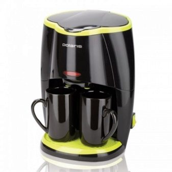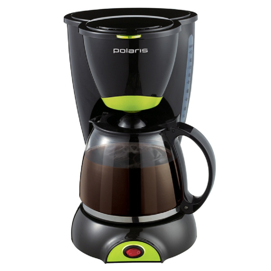 For home ideal drip coffee maker. There is a device in the Polaris model line PCM 1211 Black / Green, which will require from the family budget no more than two thousand rubles. The device immediately attracts attention with its appearance. It is very neat and with the original color solution - black and light green.
