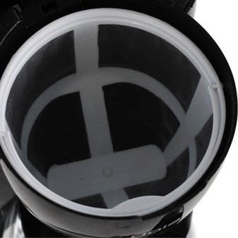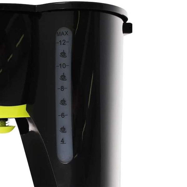 In the configuration there is an anti-drip system. The capacity of the water tank is 1.25 liters, so you can prepare a treat for several people at a time. Together with the coffee maker there is a plastic spoon for the correct dosage of ground coffee and varying the strength of the finished drink. On the operation of the device, the amount of water will inform the light indicator and the measuring scale, together with a transparent tank.
